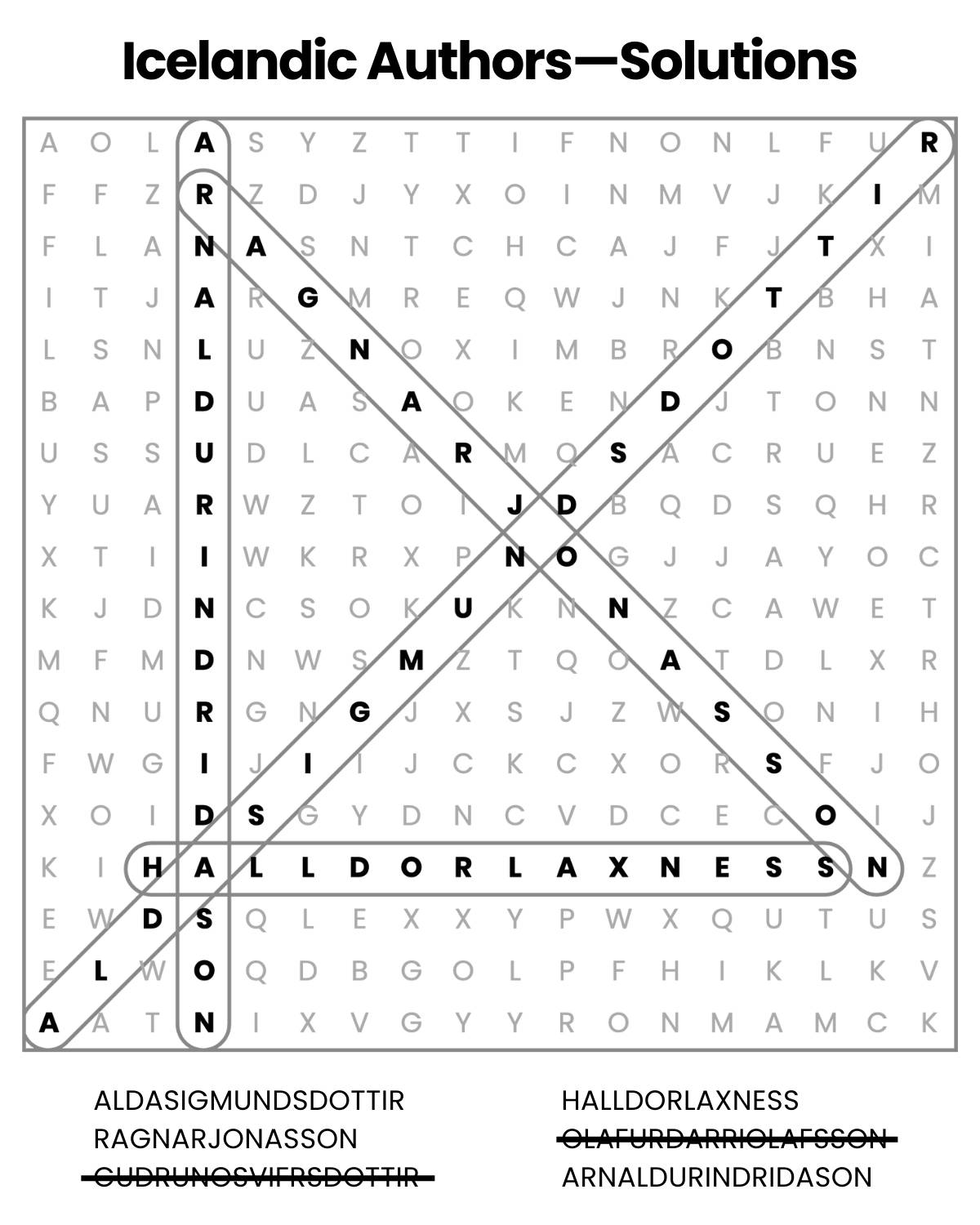 🔠 Think you got what it takes to crack the new Mini Voyage? 🔠 This Wordsearch puzzle features names of popular Icelandic authors whose works are available in English, either originally written or translated. But here’s a twist! Of the clues listed below the Wordsearch grid, only four names belong to real Icelandic writers—two are impostors that cannot be found in the puzzle! Can you weed out the fakes and solve the puzzle? *As per our Vegout Voyage tradition, all Icelandic-specific letters...